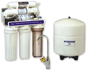 逆滲透是依靠逆滲透膜在壓力下使溶液中的溶劑與溶質進行分離的過程。滲透是一種物理現象。逆滲 透就是在有鹽份的水中(如原水)施加比自然滲透壓力更大的壓力,使水由濃度高的一方滲透到濃度低的一方, 把原水中的水分子壓到膜另一邊變成純凈水,而原水中細微雜質、膠體有機物、重金屬、細菌、病毒及其它有害物質都經污水出口排放掉。由于逆滲透膜的孔徑僅 0.0001 微米,一個細菌要縮小 4000 倍,過濾性病毒也要縮 小 200 倍以上才能通過,所以其有效去除率高達 96% 以上。 |